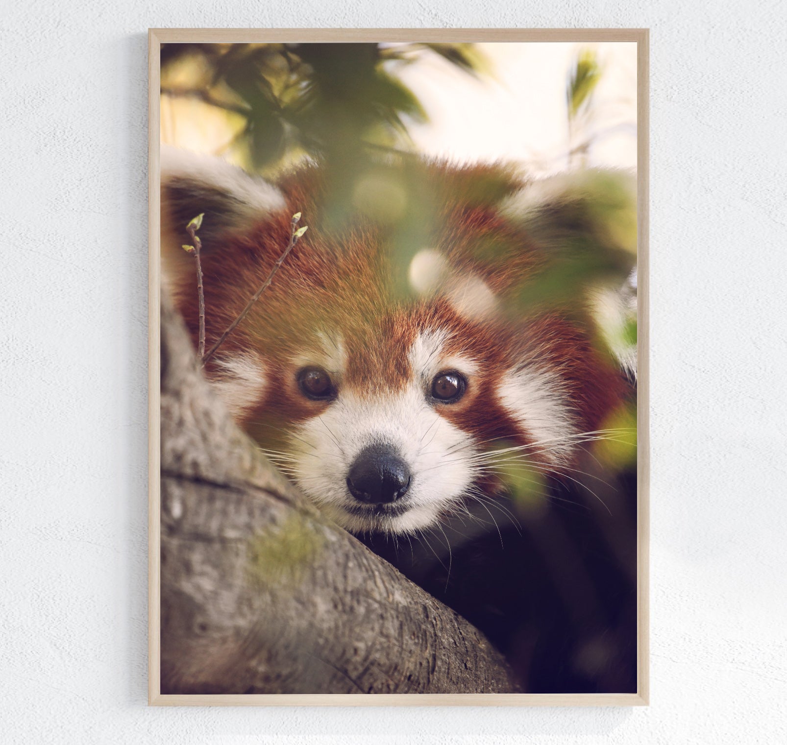 Peeking through soft foliage, this Red Panda’s curious gaze is both tender and captivating. A quiet moment of connection with one of nature’s most endearing creatures.