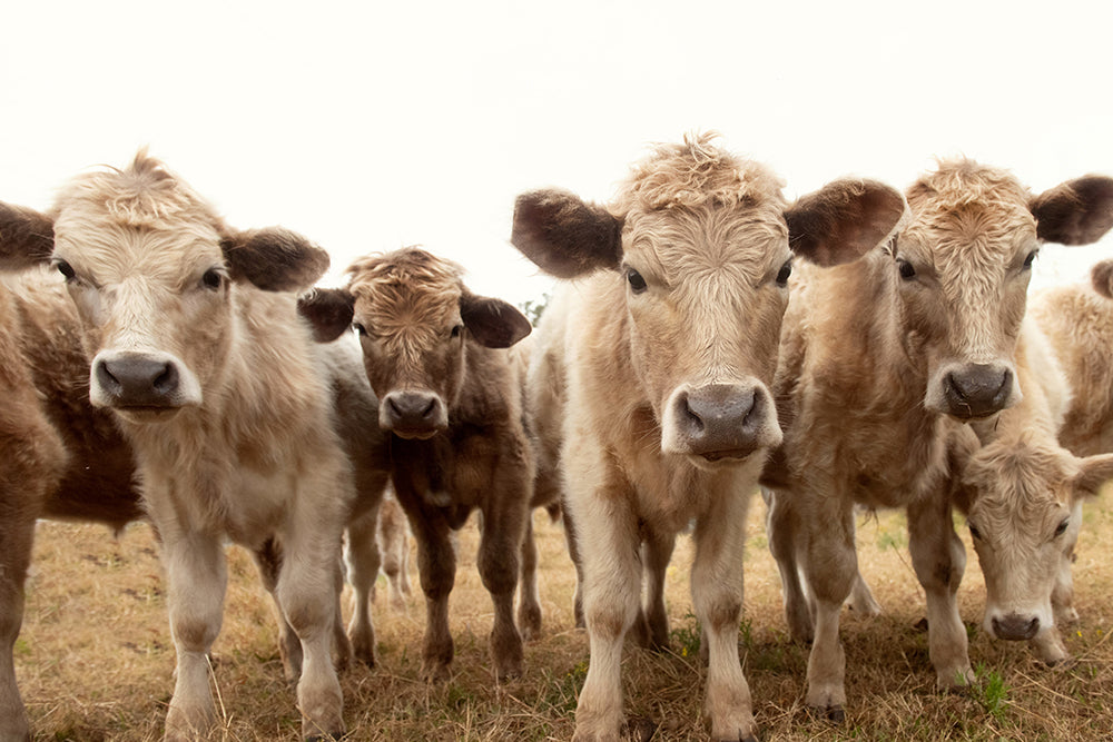 This candid country moment celebrates rural life and the personality of the herd.