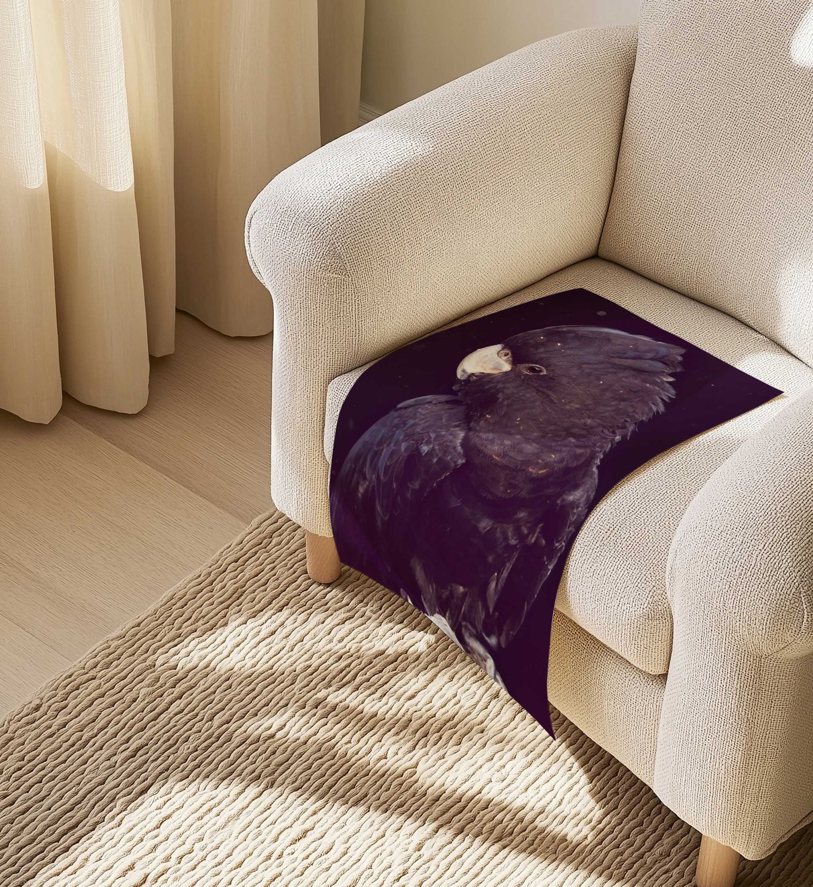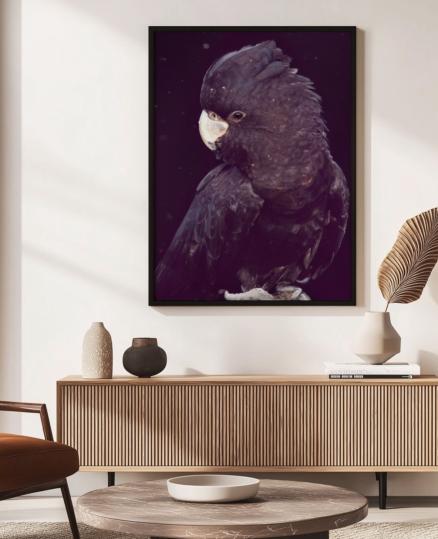 A yellow-tailed black cockatoo perches in soft light, its inky feathers rich with texture and quiet strength.