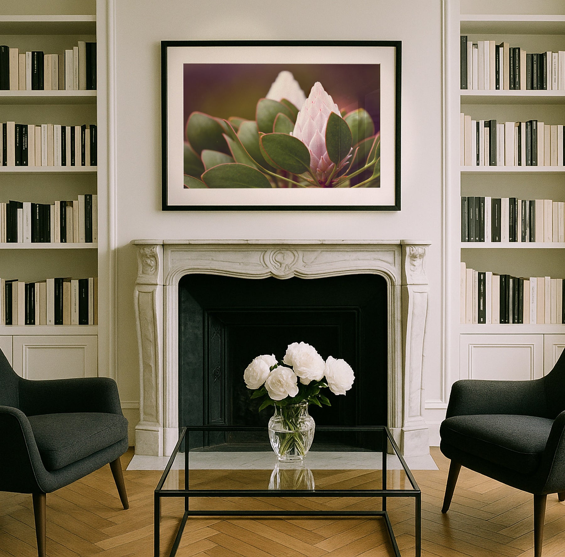 This tender portrait of a protea bud captures nature’s poise and quiet anticipation. The soft pink tones and sculptural form evoke calm and understated beauty.