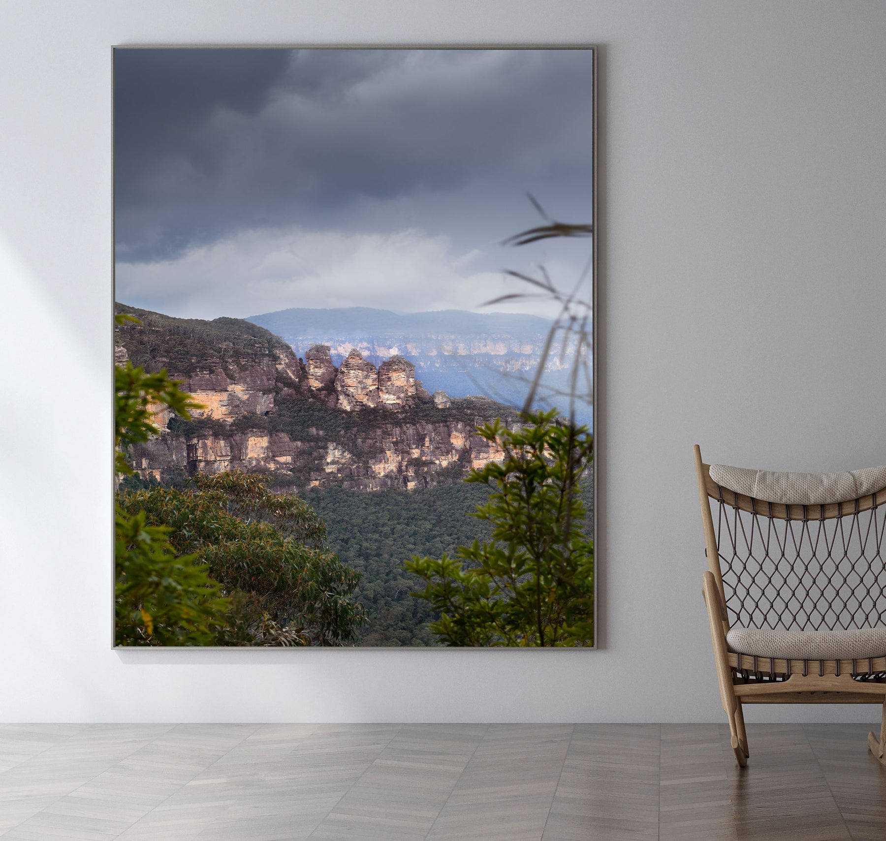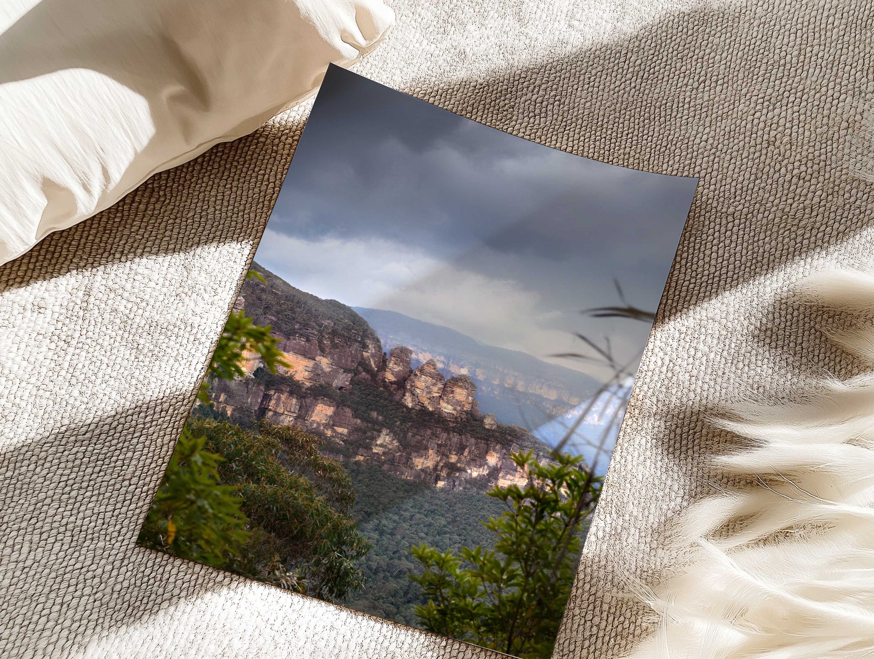 This brooding, high-contrast scene captures the ever-changing moods of the Blue Mountains. A bold print for modern or moody interiors.