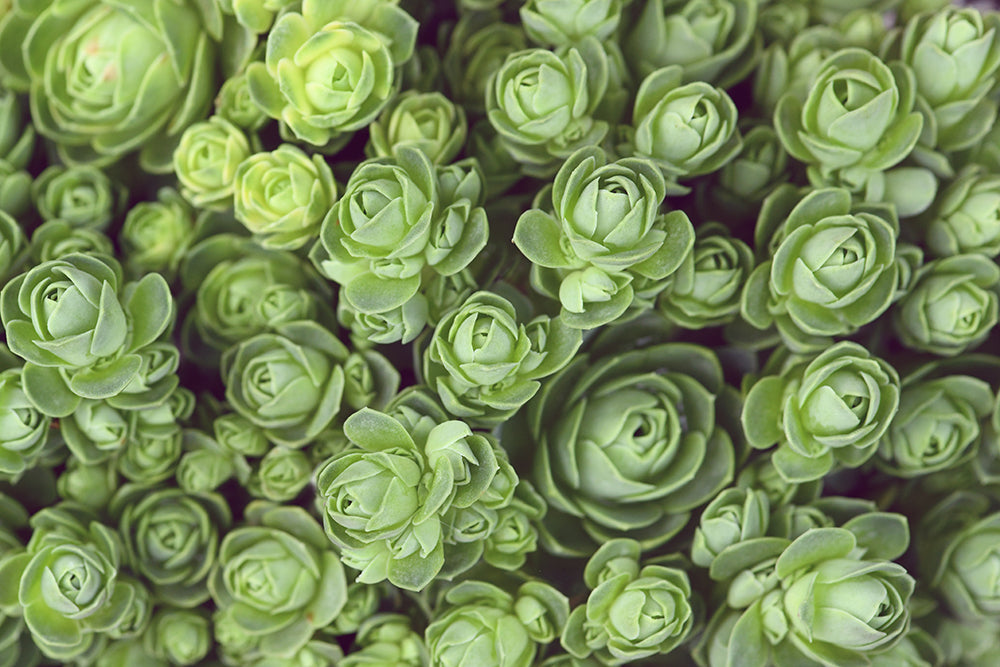 A hypnotic study in symmetry and calm, this macro photograph captures the spiral formation of succulent Dodrantalis rosettes in lush green tones. The detailed textures and balanced geometry invite a moment of stillness and appreciation for nature’s quiet design.